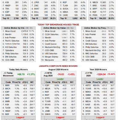 Berikut pergerakan pasar modal di Bursa Efek Indonesia hari ini (4 Agustus 2020) #IDXDailyTrading #MauMulaiKapan https://t.co/6HBU8rVCbVdetikFood