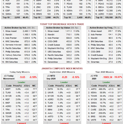 Berikut pergerakan pasar modal di Bursa Efek Indonesia hari ini (7 September 2020) #IDXDailyTrading #MauMulaiKapan https://t.co/cjAU7xNJw8DetikFinance