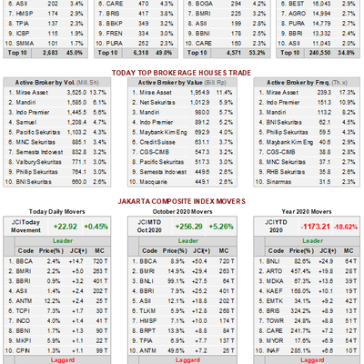 Berikut pergerakan pasar modal di Bursa Efek Indonesia hari ini (19 Oktober 2020) #IDXDailyTrading #MauMulaiKapan https://t.co/63SdkNrIogOfficial RCTI liked