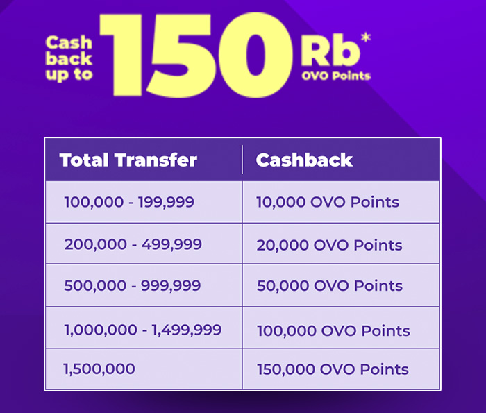 Cashback s.d. 150.000 OVO Points siap kamu raih! Kamu cuma perlu upgrade akun ke OVO Premier dan transfer ke sesama OVO sebanyak-banyaknya!