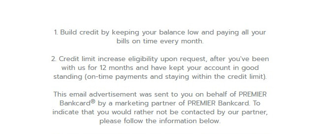 To indicate that you would rather not be contacted by PREMIER Bankcard, visit our website or write to us at:
