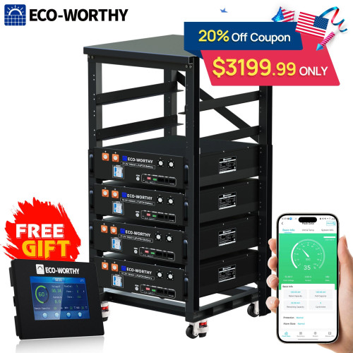Eco-Worthy 20.48kWh 48V 100AH Server Rack LiFePO4 Lithium Battery 4-Pack for $3,200 + free shipping