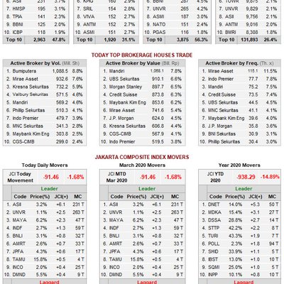 Berikut pergerakan pasar modal di Bursa Efek Indonesia hari ini (2 Maret 2020) #IDXDailyTrading #MauMulaiKapan #YukNabungSaham https://t.co/aiLVSBOQWrMETRO TV liked